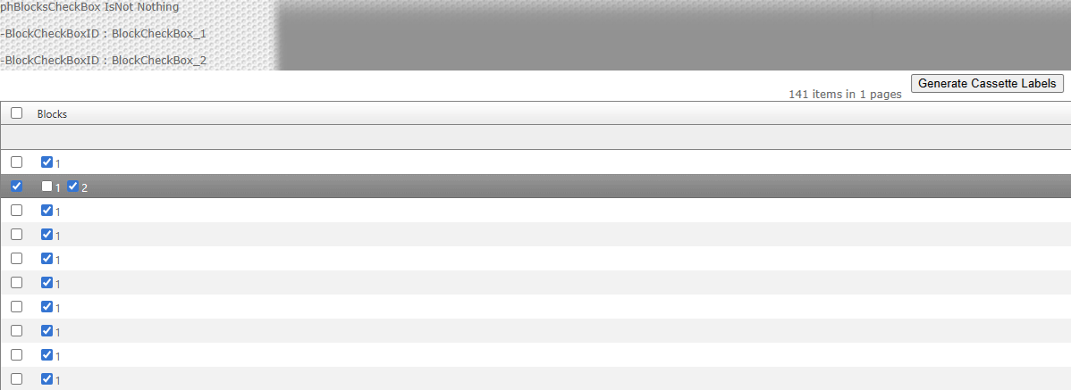 I have a table that contains a numeric field. Using this field value I generate variable numbers of CheckBoxes in a RadGrid PlaceHolder :
