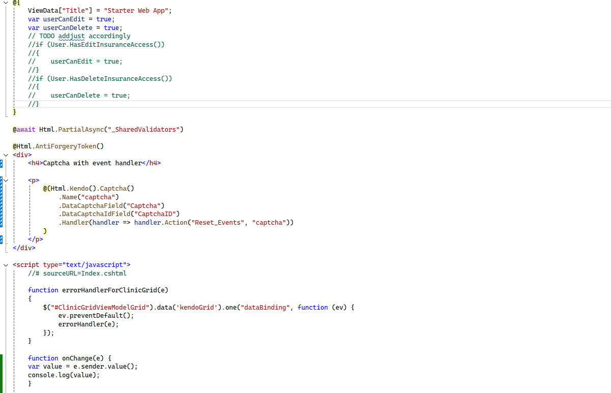 Hello, I am attempting to use your kendo captcha component for my web project when I ran into some technical difficulties related to using the kendo captcha in conjunction to a kendo wizard. I'm trying to run this captcha component as part of a step in a kendo wizard. After adding in my component with the necessary endpoints and functions into my kendo wizard, I get a blank screen with no errors or any endpoints being hit. I know the endpoints work for the captcha component because I'm using the baseline example on the kendo documentation for the Captcha overview into the very first step of my kendo wizard, and my kendo wizard loaded up just fine before adding in the captcha component. I assured the captcha component works just fine on a blank index page, so I'm suspecting the kendo wizard might be at fault but I would like some assistance in confirming that theory.