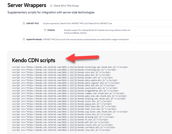 I am trying to use https://www.telerik.com/download/custom-download (Custom downloader) for jQueryUI for the latest version 2026.1.212 but none of the checkboxes are appearing or the download button.