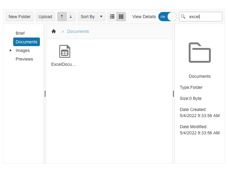 You can visualize content in the Blazor FileManager in two different views that can be switched between from the Toolbar button group: