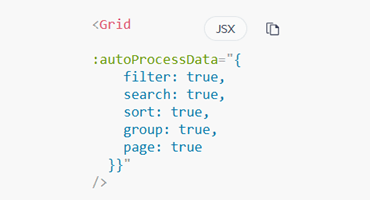 A new autoProcessData prop enables the Kendo UI for Vue Grid to internally manage sorting, filtering, grouping and paging, reducing boilerplate code.