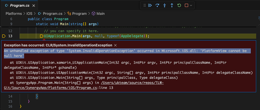 I'm suspecting a RadDataGrid because when I remove it from the page exception no longer occurs. It works on android without any issues.