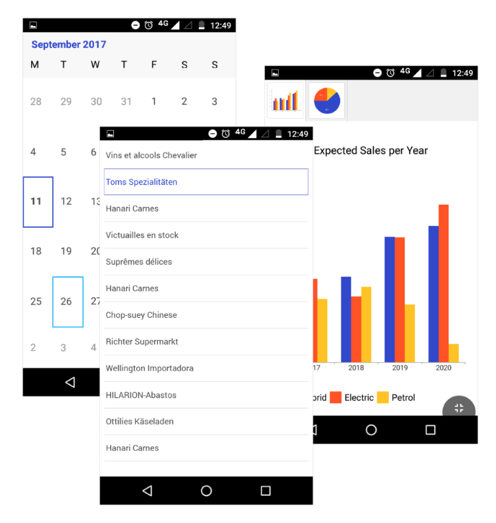 Telerik’s mobile suite is Xamarin, which uses XAML as the markup language. This works similarly to WPF with some differences. The Xamarin styling does not include tooling to aid in customization. Instead, we simplify it by providing a single built-in theme (fig. 6) and make it quite simple to customize.